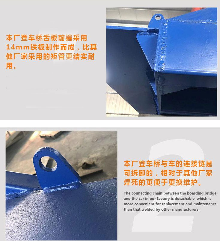 二、可調節長度的索鏈能方便地鉤住貨車,使登車橋與貨車始終緊密貼合。