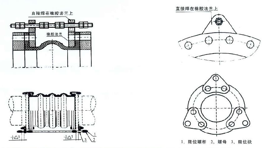 限位裝置與可曲撓橡膠接頭合理搭配使用,在管道—般連接中或在有位移要求的管線線路中使用時,能起到限定位移量的作用.當可曲撓橡膠接頭與泵、閥相連接使用時,在可曲撓橡膠接頭上配用限位裝置,可起到傳力作用,是鋼制傳力接頭的理想替代產品。